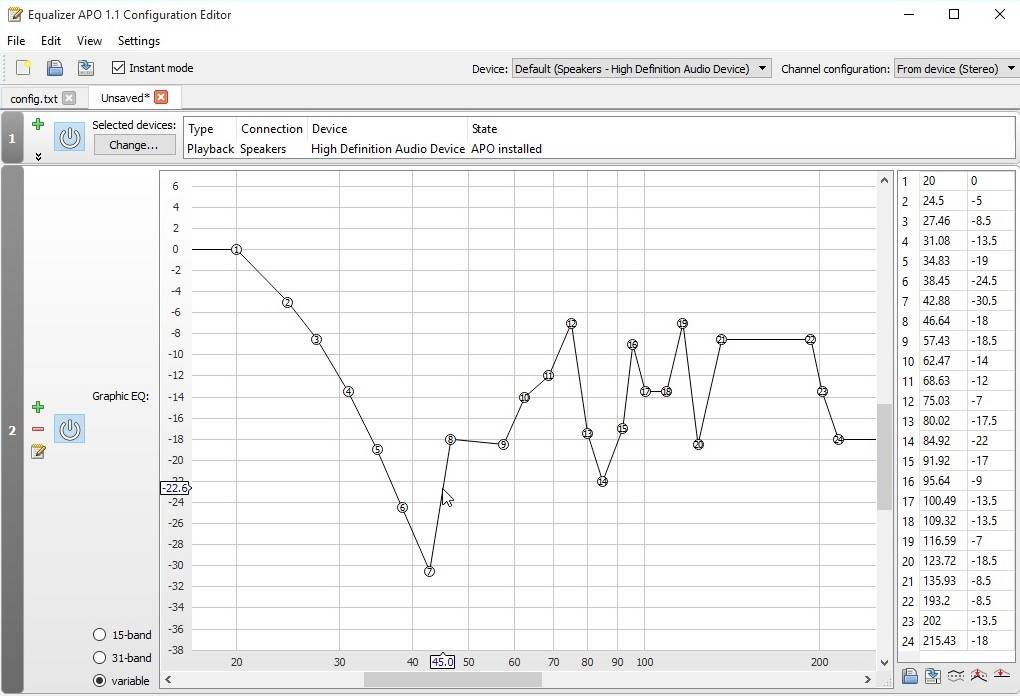 Az Equalizer APO legjobb tulajdonságai közé tartozik a korlátlan szűrők száma, többcsatornás használat, támogatás a 3D térhangzás számára és nagyon alacsony CPU-használat. Több profil is létrehozhatsz (például az külső hangszóróidhoz és a fejhallgatódhoz), és könnyedén váltogathatsz közöttük.