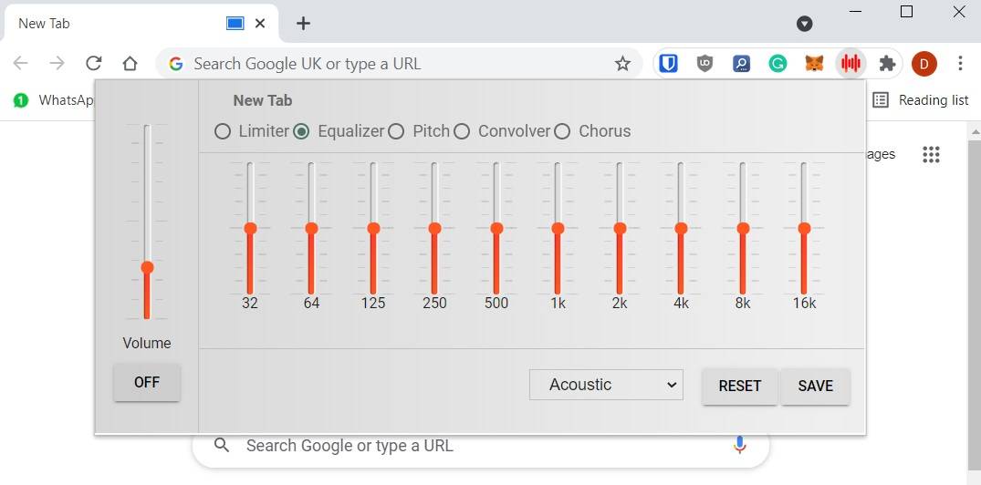 Az Equalizer for Chrome Browser lehetővé teszi a Chrome böngésző hangszínének testre szabását. A böngészőbe beépített zenei és videó lejátszókhoz hozzáad egy hangszínszabályzó csúszkát. Ez lehetővé teszi a hangok testreszabását a böngészőben, például a YouTube vagy a Spotify hangerejének szabályozásával.