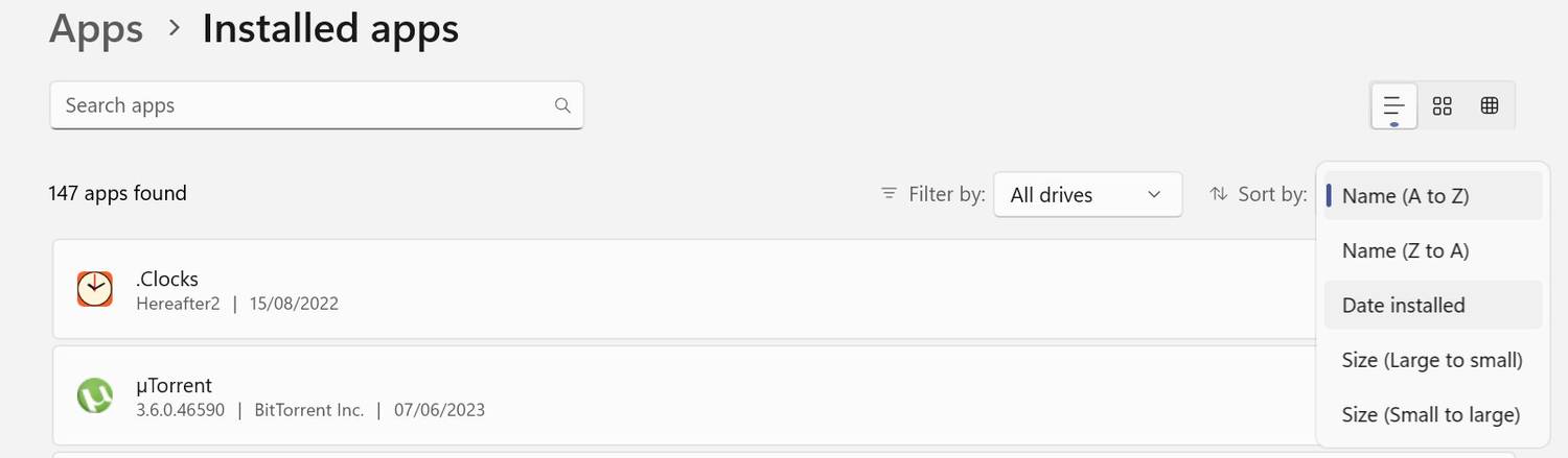 Ha emlékszik a nemrégiben telepített alkalmazásra, kövesse a Windowson bármilyen szoftver eltávolításáról szóló útmutatónkat, hogy eltávolíthassa azt. Ha nem emlékszik, nyissa meg a Beállítások alkalmazást, és navigáljon az Alkalmazások > Telepített alkalmazások menüpontra. Itt rendezze az alkalmazásokat a telepítés dátuma szerint, keresse meg a legutóbbi alkalmazást, és távolítsa el.