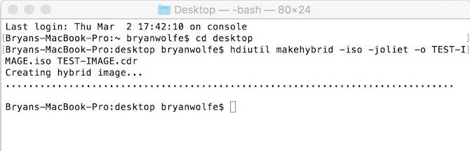 Ahogy az a fenti képernyőképről is látszik, a Terminal létrehoz egy új hibrid képet. Ezt a képfájlt mind Windows, mind Mac számítógépek használhatják, amelyek ISO 9660 és HFS fájlrendszereket használnak.